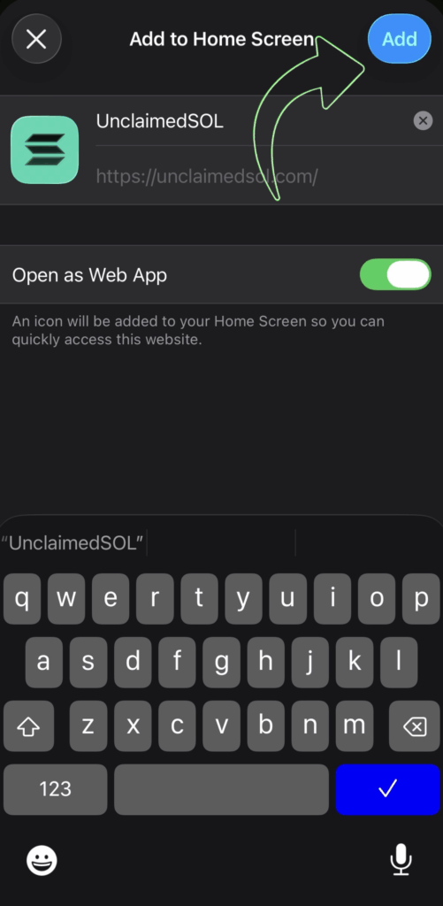 That’s it! You’ll now see the Unclaimed SOL icon on your home screen just like any app. Tap it to launch instantly.